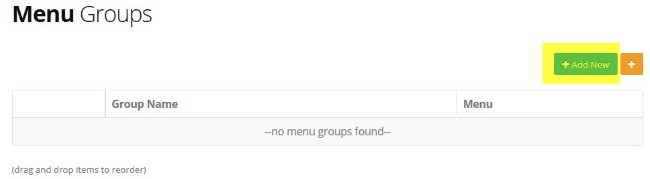 7. Click the Add New button to add your menu groups using the New Menu Group dialog