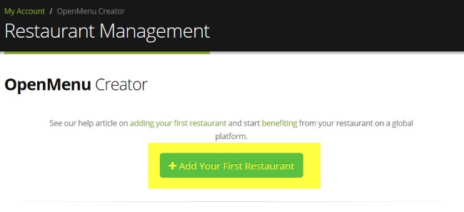 1. Once you’re logged into your account all management of your restaurant(s) is done through the OpenMenu Creator as highlighted below.