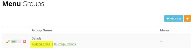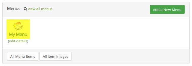5. Click the Add New Menu link to start your first menu for the newly created restaurant.